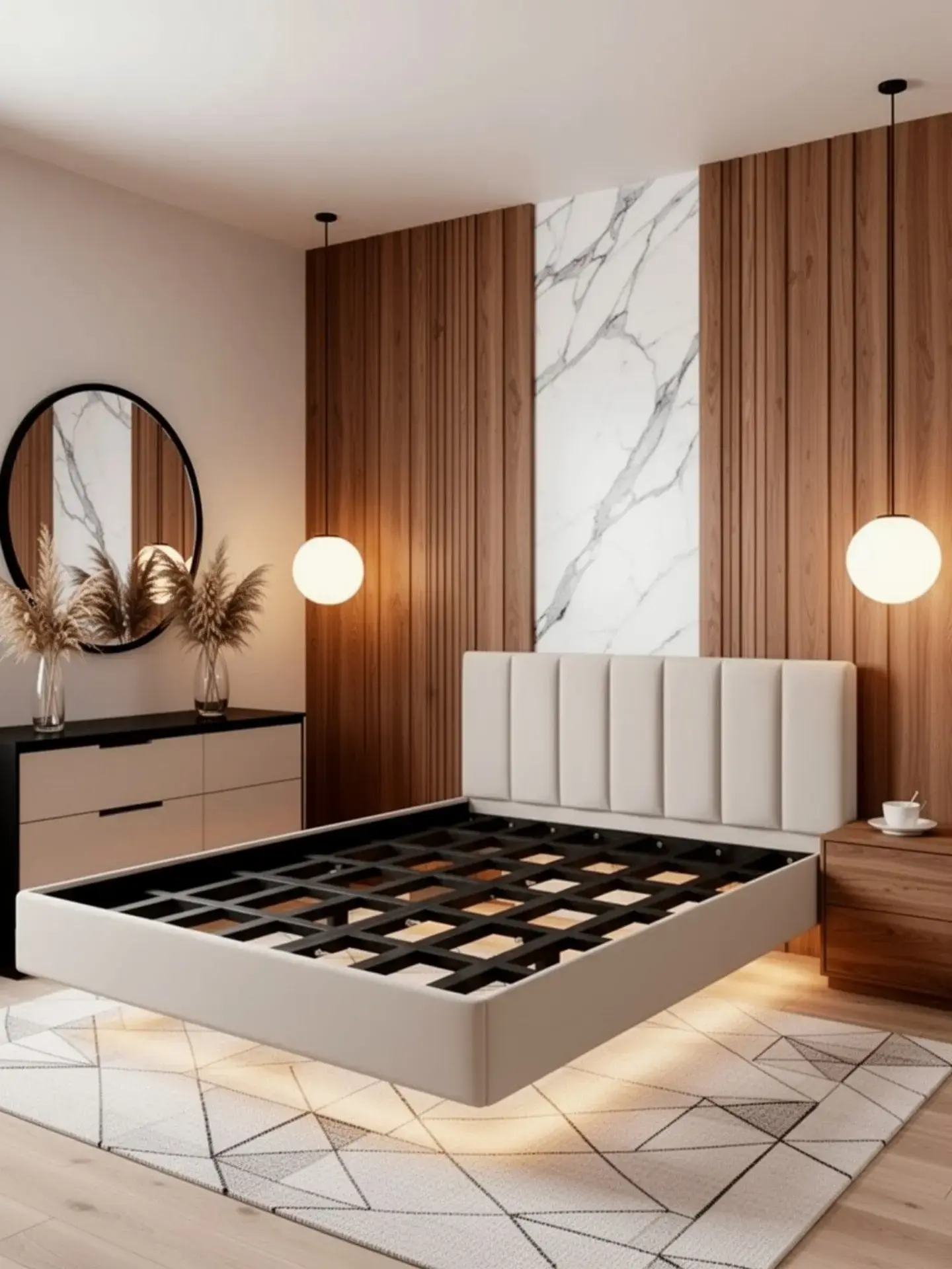 Парящая двуспальная кровать 160x200 см с изг...