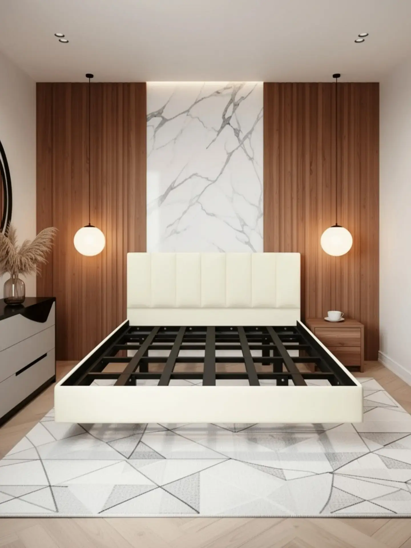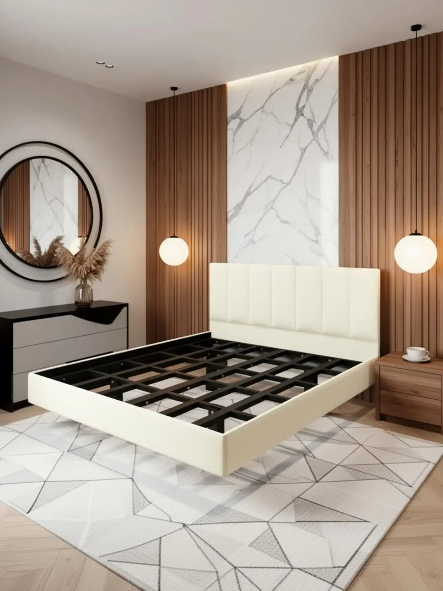 Парящая двуспальная кровать 180x200 см с изящным изголовьем "Лепестки" — стиль и комфорт без крепления к стене. Эта металлическая кровать с современным дизайном и эффектом парения станет идеальным дополнением вашей спальни. Прочная конструкция обеспечивает надежность: каркас из металлического профиля 60×40×2 мм и 40×20×2 мм с минимальным расстоянием между ламелями выдерживает до 1000 кг. Лаконичное изголовье "Лепестки" гармонично впишется в любой интерьер, от лофта до хай-тека. Эффект парения создает ощущение невесомости: ножки кровати скрыты более чем на 2,5 метра, и она не выступает за пределы матраса. Порошковое покрытие, запекаемое в печи, делает кровать антивандальной, ударостойкой и экологически чистой. Срок службы превышает 20 лет, и она не требует особого ухода. Легкая уборка и простота в уходе делают эту кровать универсальной. Парящая кровать 180x200 с изголовьем "Лепестки" сочетает эстетику, прочность и комфорт, добавляя интерьеру современности и обеспечивая долговечность.